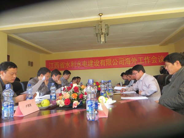2013年2月12日,農歷大年初三,新春伊始,公司董事長、總經理王元旦率領部分高層管理人員和部分部門負責人一行13人來到埃塞俄比亞,給埃塞分公司員工帶來了新春的祝福和慰問,并現場召開了“江西省水利水電建設有限公司海外工作會議”,會議由張周平副總經理主持。