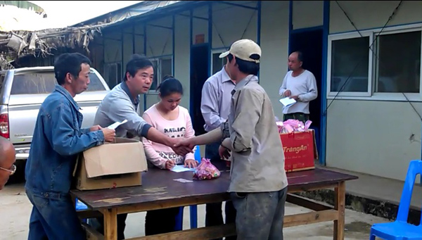 項(xiàng)目管理人員給越南員工送上春節(jié)禮品和慰問金