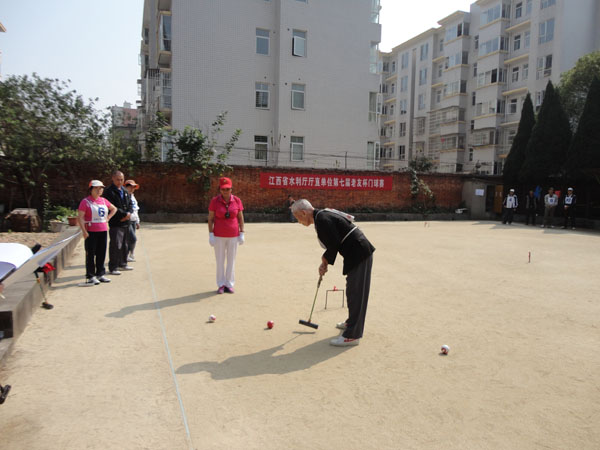 2015年10月28日,我公司門球代表隊參加了江西省水利廳廳直單位第七屆“老友杯”門球賽,本次比賽由江西省水利廳離退休干部處主辦、江西省水利水電建設有限公司承辦,廳直單位共4個代表隊參加。經過緊張激烈的角逐,我公司門球代表隊榮獲本次比賽團體組第一名。 公司門球代表隊是一支由離退休職工組成的隊伍。在賽場上,他們團結一致、密切協作、敢打敢拼,展現了江西水建人良好的精神風貌和不懈奮斗、頑強拼搏的風采。