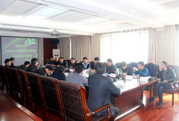 2月15日,上饒市水利局副局長江華平一行來公司就企業(yè)改制工作進(jìn)行調(diào)研。公司董事長王元旦、總經(jīng)理徐洪良、黨委書記王延軍、副總經(jīng)理兼江西海外公司執(zhí)行董事張周平、副總經(jīng)理曾朝文等一同參加了調(diào)研座談。
