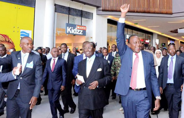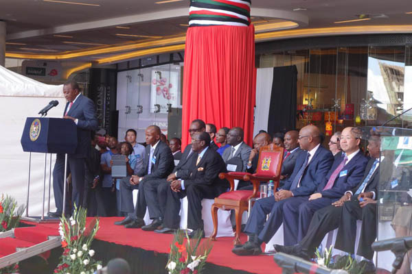 下午15時,激動人心的時刻到了!在萬眾矚目中肯雅塔總統親自剪彩,并發表了重要講話,他對中國公司實現了肯尼亞人的夢想給予了充分肯定。雙河投資項目系由肯尼亞上市公司CENTUM集團主導,江西省水利水電建設有限公司與中航國際工程公司強強聯合共同參與投資建設的重大項目。我司駐肯尼亞雙河項目部在項目經理彭紅軍率領下,精益求精,嚴把質量關,克服了時間短、任務重的困難,僅用了兩年半時間即完成商場項目建設任務,創造了東非速度!