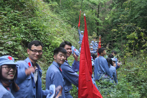 抵達井岡山后,全體人員立刻進入三灣隊伍整編環節,推薦隊長、政委和旗手,設計隊名、口號和LOGO。很快“飛龍隊”、“戰鷹隊” 等名字紛紛閃亮登場。“龍征萬里,所向披靡”、“ 群狼行千里,星火可燎原”等口號一次又一次迎來全場的陣陣歡呼。隨后進行了“穿越叢林、突破封鎖線、匍匐前進、火線救援”4個比賽項目,這些比賽項目,增強了大家的團隊意識,每名成員充分認識到了團結協作、友愛互助的重要性,使大家在比賽中受到啟發、受到鼓舞、更使大家得到了鍛煉,經受了考驗。