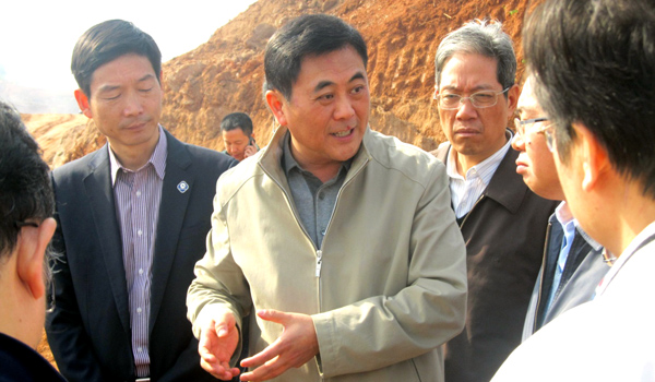 2013年11月20日,江西省萍鄉(xiāng)市市委書(shū)記陳衛(wèi)民率市委、市經(jīng)濟(jì)開(kāi)發(fā)區(qū)、建設(shè)局等有關(guān)部門(mén)負(fù)責(zé)人來(lái)到我公司承建的萍鄉(xiāng)市城市防洪應(yīng)急工程2標(biāo)分洪河項(xiàng)目檢查指導(dǎo)工作。