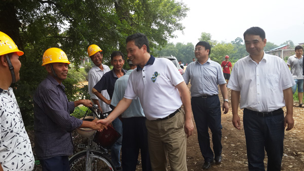 2014年8月8日上午,上饒市委書記陳俊卿一行來到我公司承建的玉山縣樟村鎮防洪工程檢查指導工作。來到施工現場,陳俊卿書記一行頂著炎炎烈日,深入查看并了解了防洪工程的投資規模和施工生產建設情況,隨后,項目部經理楊小貴對項目完工后將產生的防洪生態效益作了簡單介紹,陳俊卿書記聽后非常高興,他指出,項目部和承建單位要齊心協力,加強安全生產管理,確保工程順利完工,早日造福當地百姓。最后,陳俊卿書記還詢問了施工人員的生活情況,叮囑項目部既要保證工程施工進度,也要注意防暑工作,讓員工家屬放心。