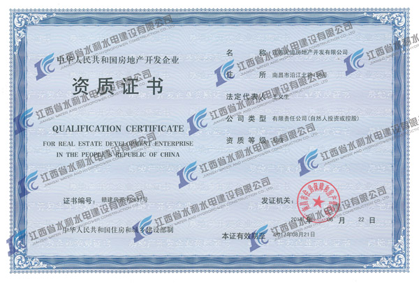 2014年8月22日,經南昌市住房保障和房產管理局審核批準,江西水建子公司江西元迪房地產開發(fā)有限公司房地產開發(fā)資質成功獲得延續(xù)。