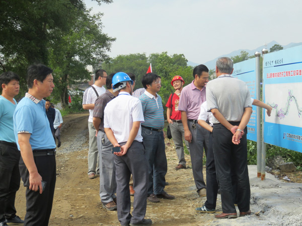 為進一步落實8月8日全省水利建設推進會精神,2014年9月21日上午,以水利廳副廳長廖瑞釗為組長的督查組來到我公司承建的上饒市玉山縣樟村鎮防洪工程現場檢查指導工作。督查組一行深入工地全線施工現場,每到一處都詳細詢問各參建單位情況,了解工程的投資規模、設計方案及進度、質量控制情況。督察組對樟村鎮防洪工程施工質量尤其是工程外觀表示非常滿意。在看了工地整齊規范的五圖一牌及公司形象宣傳欄后,廖瑞釗副廳長對我公司的標準化施工管理給予了高度評價,還不時拍照記錄,并要求玉山縣水利局在全縣其他水利建設工地參照學習并加以推廣。在檢查完工地現場后,督察組在樟村鎮政府就防洪工程設計、施工、及鄉鎮規劃召開了座談會。