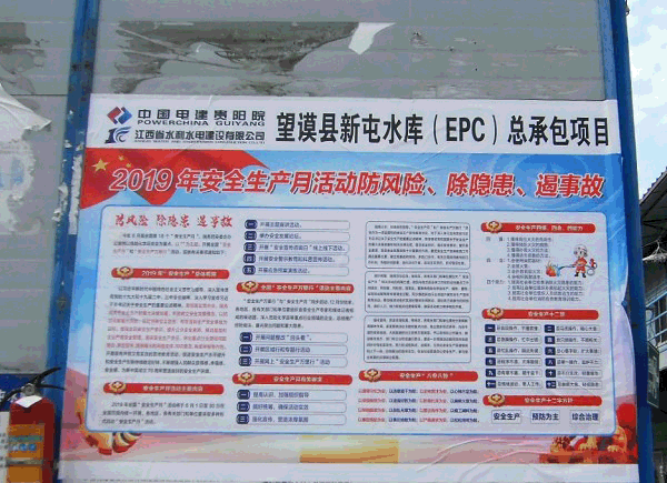 為積極響應全國第18個“安全生產月”主題活動,我司望謨縣新屯水庫(EPC)總承包項目積極開展2019年“安全生產月”安全質量和安全生產倡議活動。