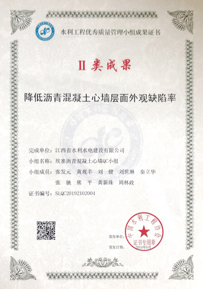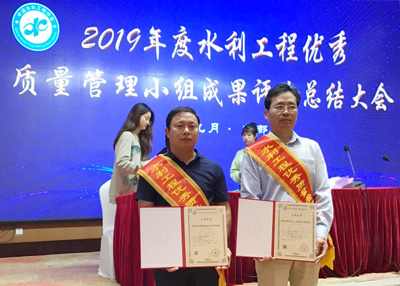 公司QC成果榮獲2019年度水利工程優秀質量管理小組優秀成果獎