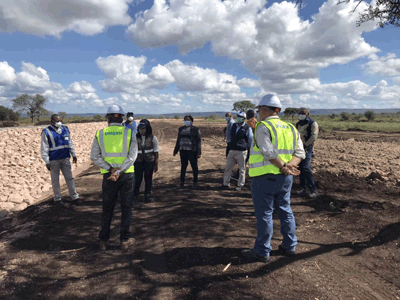 4月24日,在莫桑比克國家重點工程Corumana即將竣工的關鍵時刻,莫政府公共工程部常務副部長Cecilia Chamutota女士在國家水務局局長、國家自來水公司總經理的陪同下,帶領政府相關部門負責人,視察項目建設情況。